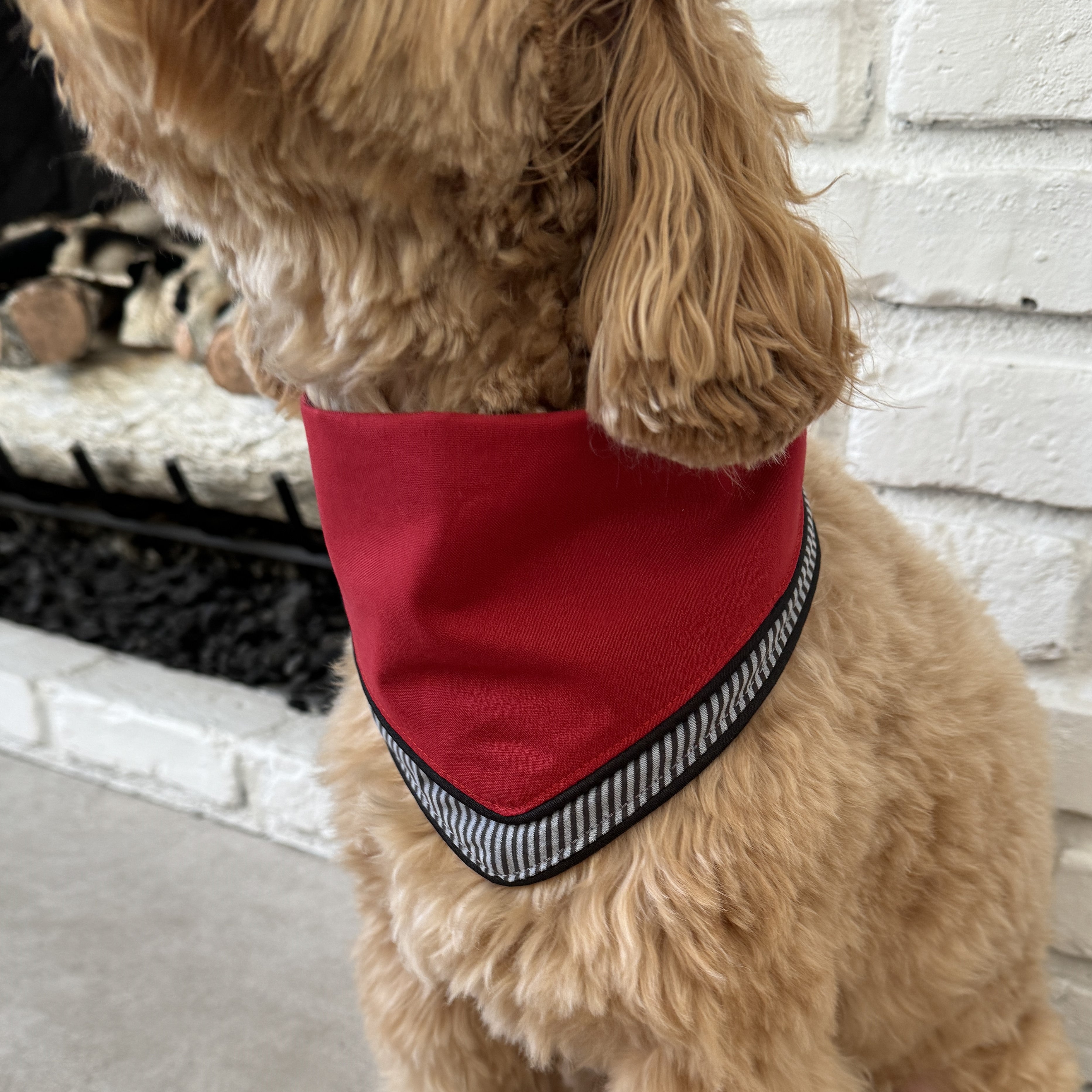 Cheer on your favorite team in style with this black, red, and gray style. Made of 100% cotton, your pup will be cool as a cucumber! Like all Goldsnap layered scarves, this one is reversible for a tonal gray striped look.