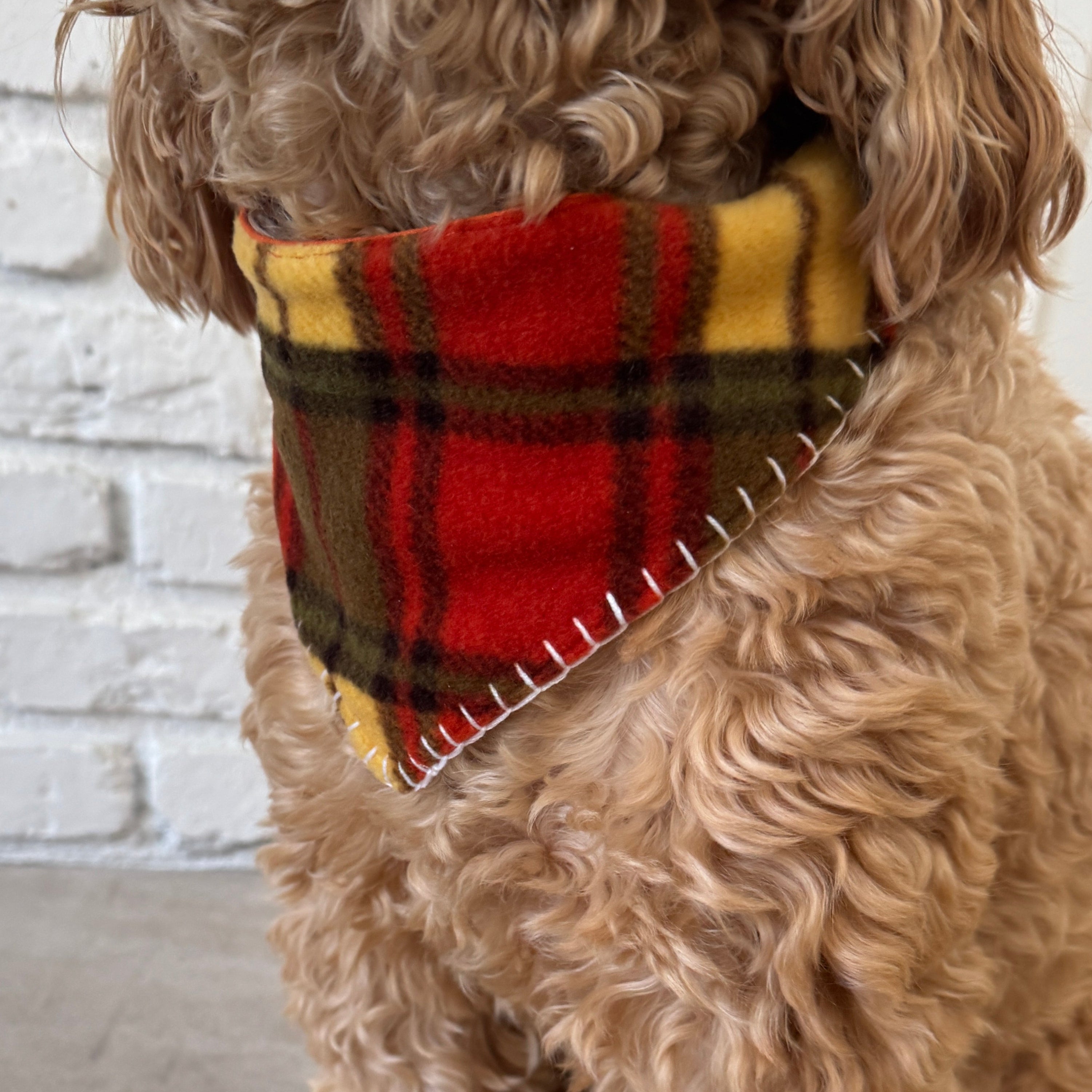 This super soft plaid fleece is backed with a durable and sustainable tencel and linen blend. The edges have been hand-finished in a blanket stitch for a classic fall look. Wear it both ways for 2 distinct styles. This scarf is in limited supply due to the hand made nature of the construction.