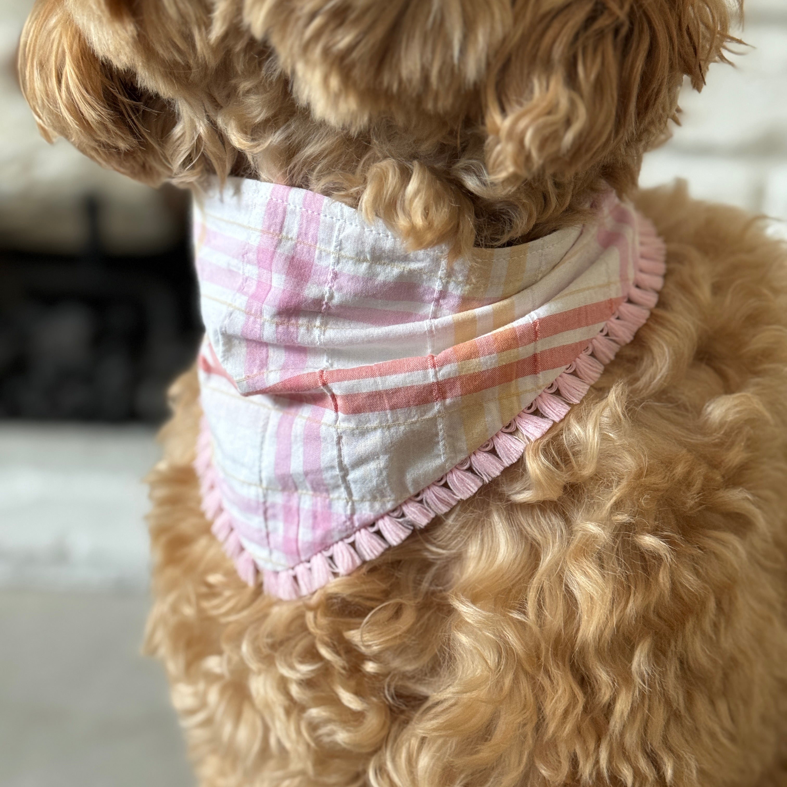 Your pup will be picnic ready in this sherbet-colored seersucker print. Made of 100% cotton, this scarf is lightweight and perfect for summer.