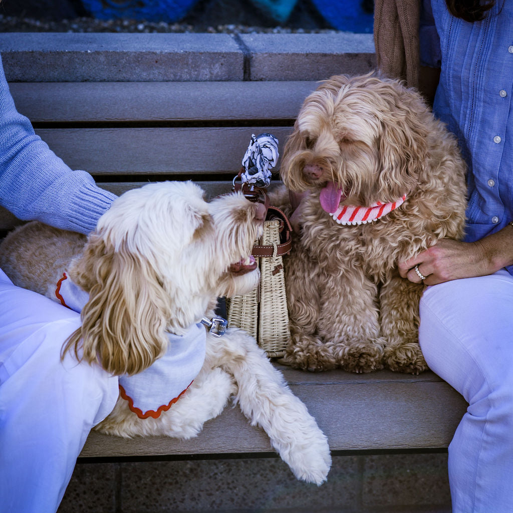 We are moms, dog moms, and close friends living in Newport Beach. We believe that our dogs should reflect their own style and spirit, not in cumbersome “human clothes,” but in adornments that are made especially for them.