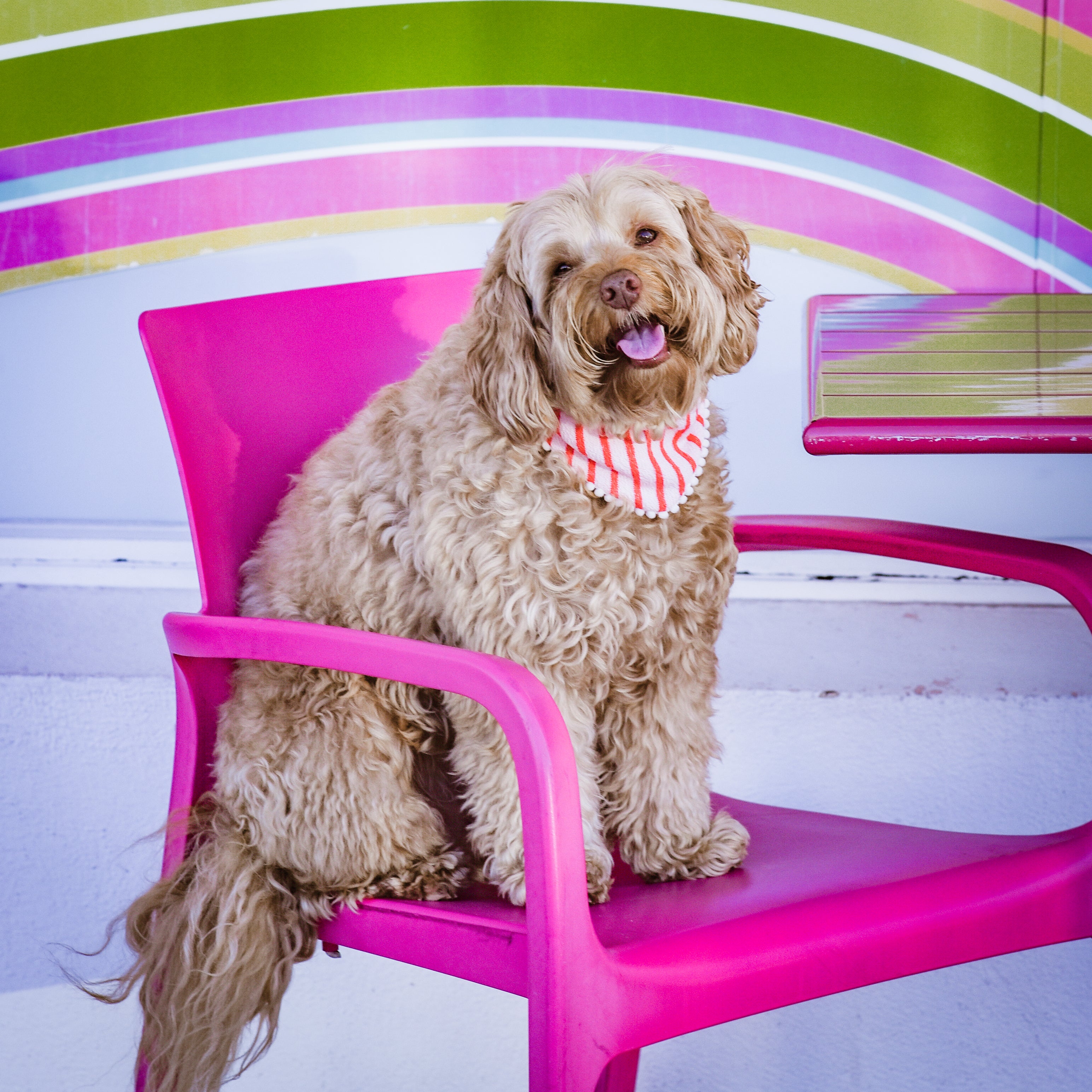 You can see Lucky strolling around Fashion Island in Newport Beach or hanging out the window of his mom's car!